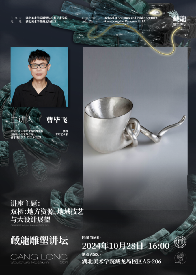 讲座伊始,李冰老师向大家详细介绍了曹毕飞教授的从业经验和创作经历。曹毕飞教授是中国金属与艺术首饰领域的首位海外博士,并担任北美金工协会会员与评审员,国际艺术首饰论坛特邀会员与国际评委等职务,是国际知名金工与首饰青年艺术家。