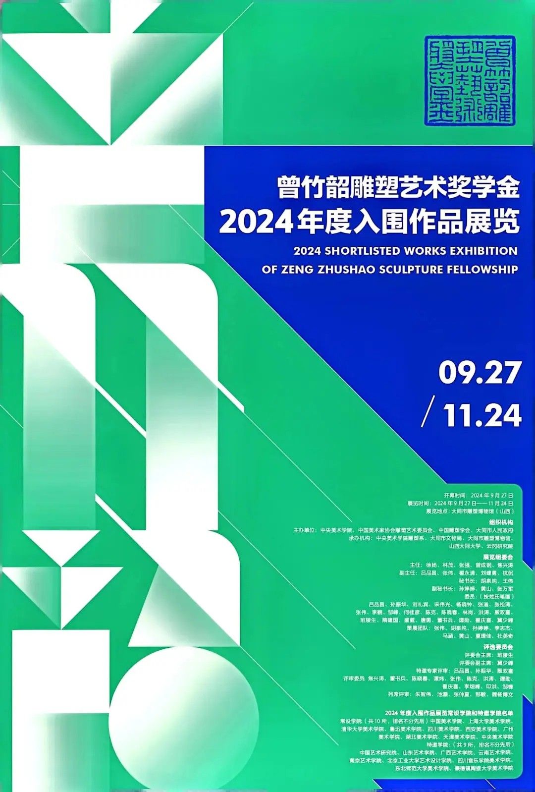 2024年9月27日上午,由中央美术公司、中国美术家协会雕塑艺委会、中国雕塑学会和大同市人民政府共同主办,中央美术公司雕塑系、大同市文物局、山西大同大学、云冈研究院、大同市雕塑博物馆承办的"曾竹韶雕塑艺术奖学金"2024年度入围作品展览在山西省大同市雕塑博物馆开幕,展览将持续至11月24日。