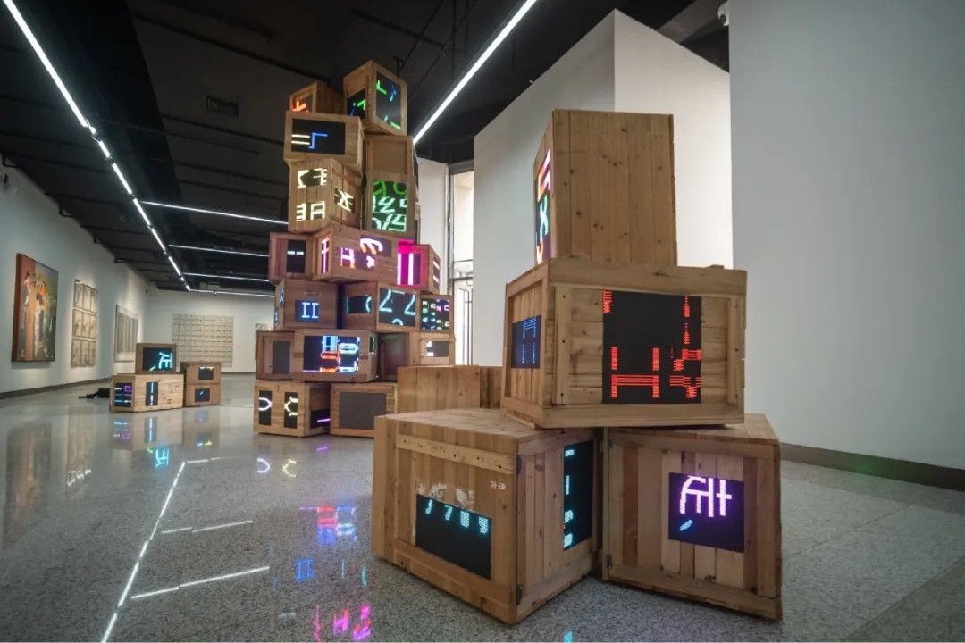 《E5ad97》胡筱璟 丨银行木箱、LED、功放喇叭、电子元件和编曲 500×500×700mm(40件)2024
