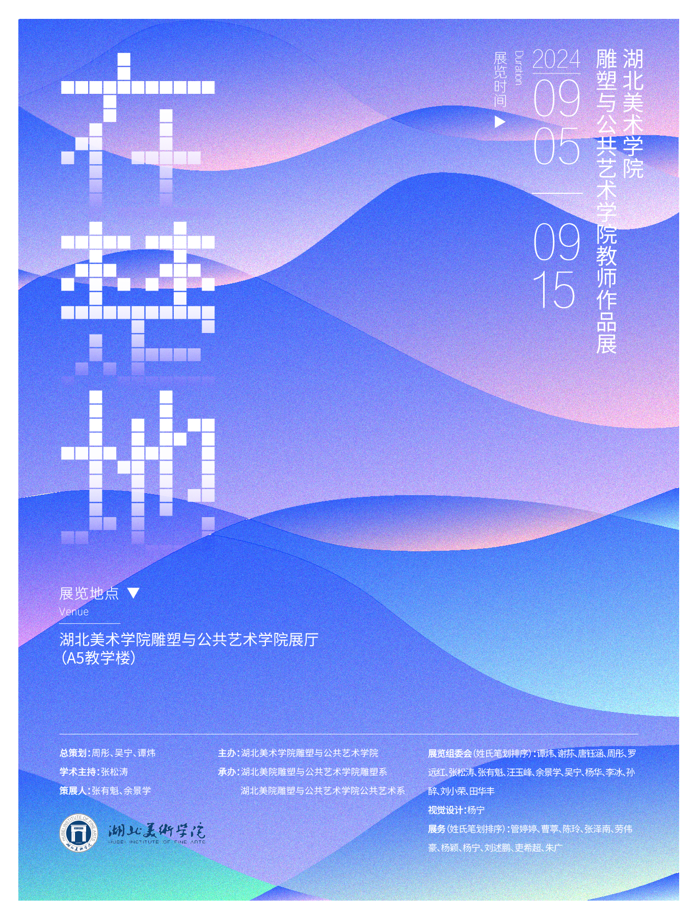此次展览的主题没有从某一种创作方法或者某一种创作理念作为出发点,而是从艺术家在此地生活工作的情境出发、以及与楚地之间的现实联结。在楚地、在千湖之城、在中部唯一独立设置的专业美术公司。这些关键词都会成为教学方向与创作所蕴含的内容。因为地域性才凸显了特殊性、在地性、生态性……这种特殊性彰显了地域带给创作者的个性;这种在地性体现在了学科面对全球化语境的自身话语建设;这种生态性更是直指教员工态、湖泊水网生态公共艺术概念的导向。