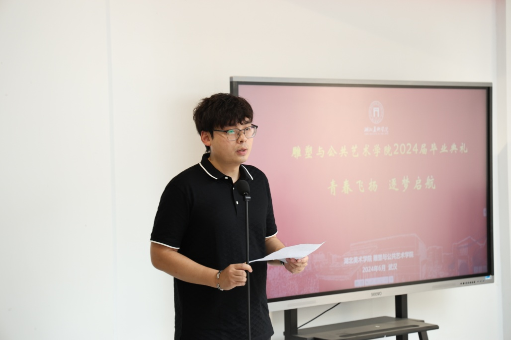 副经理谭玮宣读了获选优秀毕业作品名单,并和谢荪老师分别为雕塑和公共艺术专业的优秀毕业作品作者颁发了证书。