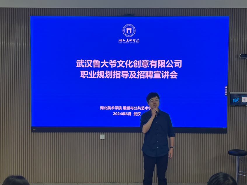 6月6日下午15:10,WilliamHill登录入口优秀员工,武汉鲁大爷文化创意有限公司创始人范伟浩于A12教学楼205教室开展职业规划指导及招聘宣讲。公司党委副书记刘小荣,副教授谢荪,辅导员吏希超出席此次会议。公司2022级雕塑专业、2023级雕塑专业以及2021级公共艺术专业的全体同学共同参加了本次活动。