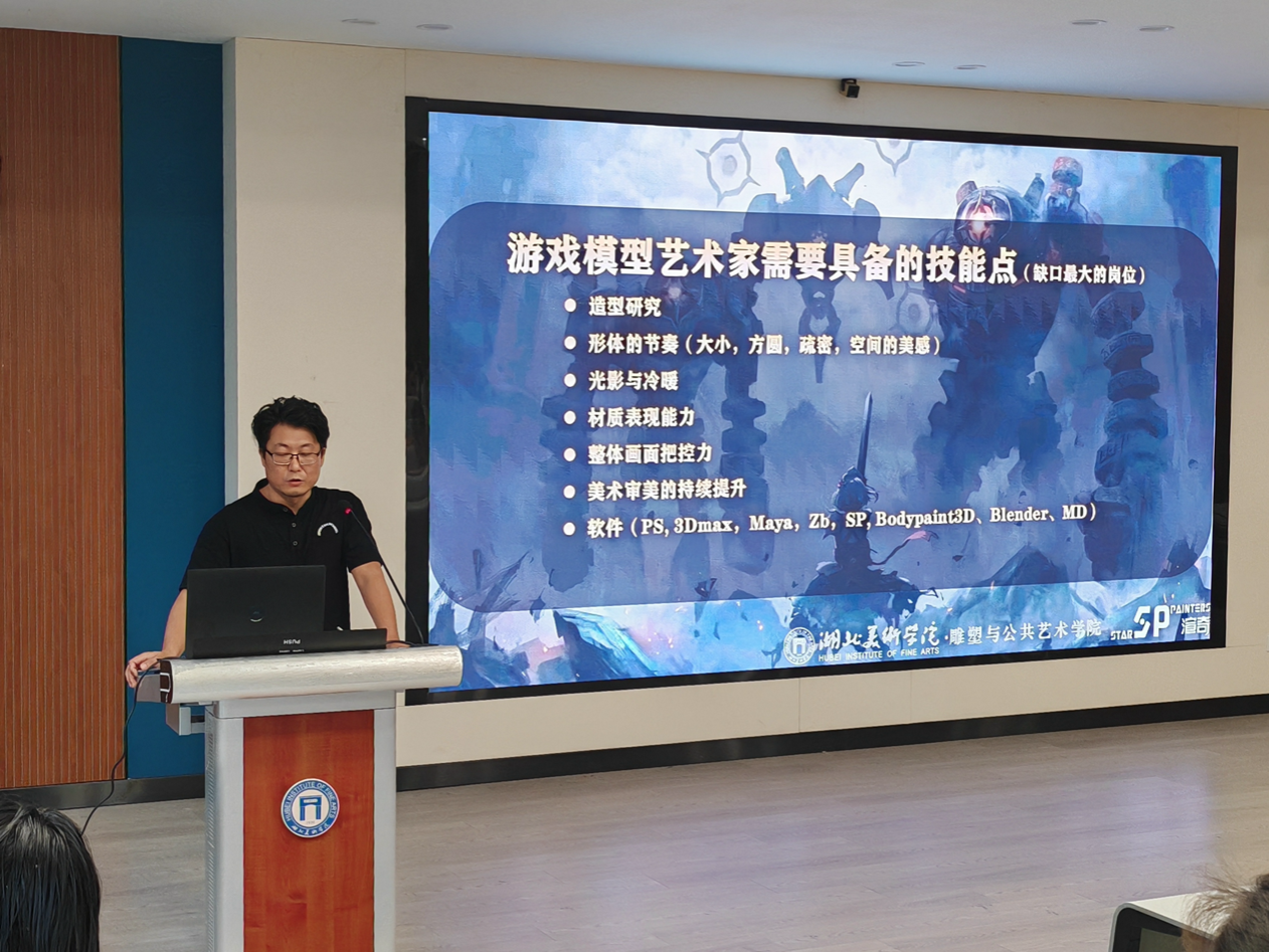 会议第二部分由陈冰老师给大家分享渲奇公司的游戏模型,强调同学们除了具备扎实的艺术技能功底,还需掌握数字化技能、团队协作能力等多方面的能力,以适应社会的快速发展和行业需求的变化,并就游戏模型艺术家需要具备的技能点展开讲述。