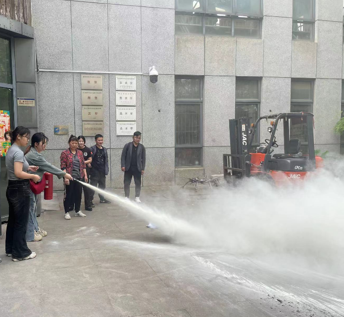 为了让师生们更加直观地了解灭火器的使用方法和灭火技巧,培训结束后,黄教官还现场进行了灭火演练。他模拟了火灾现场的情况,展示了如何使用灭火器进行灭火。师生们纷纷围观学习,对灭火器的使用有了更直观的认识。