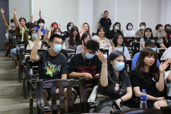 第五项,辅导员讲话。吏老师补充强调了防诈骗的重要性,随后用风趣幽默的语言进行了自我介绍,不仅拉近了师生距离,更以自身7年的湖美老员工活经历为线索,生动形象地为新生们指明努力的方向,强化了新生作为新时代湖美人“崇德、笃学、敏行、致美”的校训精神。其中,他强调了“不要作弊、不要打架、加强宪法学习”等原则性问题。此外,吏老师结合相关家国题材宣传影片进行了爱国主义教育,引导新生树立远大理想、热爱伟大祖国、担当时代责任、勇于砥砺奋斗、练就过硬本领、锤炼品德修为。吏老师的讲话真情流露,引发了在座同学们的强烈共鸣与深刻思考。
