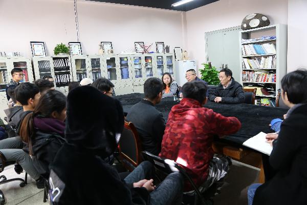 访谈开始,许经理首先向同学们介绍了公司目前正在大力开展的两项工作,一是学习宣传贯彻党的十九大精神,二是积极推进本科教学审核评估工作。访谈中,同学们畅所欲言,从新生教育、基础教学实施、体育场馆设施、校园环境美化、自习室设置与管理、寝室分配与管理、图书资源利用、员工活动、教室环境改善、课程安排、就业引导等方面踊跃提出自己的想法和建议。许经理认真聆听,一一记录,对于需要解释的问题,许经理耐心为同学们解惑释疑,对于需要相关部门调研解决的问题,许经理表示将及时向有关部门反映同学们的诉求,有针对性的处理解决。