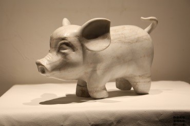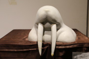 参展作品——动物系列作品。动物的外形常见却不普通,在制作时需要对称,稍不注意,一边没做好,另一边也要一起改。而且石头天长,上面自带的肌理会影响到作品的观赏,《小龅牙》(右图一)在作者挑选石头时就比较幸运,石头很光滑,使成品能够达到自己想要的效果,但《小龅牙》的龅牙部分是制作时的难点,反复断过好几次。