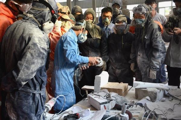 此次福建崇武游学让员工们得到了不一样的雕刻体验,在他们中间不管男女都要穿上专业工作服,都要在沉重的泥灰里战斗,用唐钰涵老师的话说就是“穿上了衣服就分不清男女了!”说着轻松,但只有他们才知道这其中的酸甜苦辣。