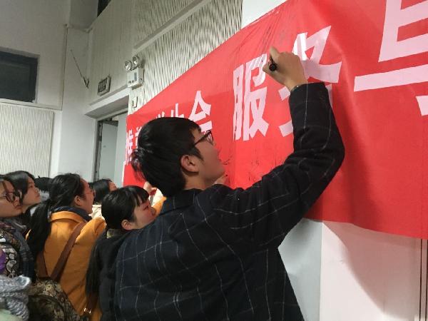 会议即将进入尾声,接下来由辅导员贺芳老师宣布本年度各部门优秀成员名单,并由主席团为优秀成员颁发证书和奖品。同学们有秩序的上台领奖,现场传来一阵阵热烈的掌声,对获奖的同学表示祝贺。雕塑系员工会是一个并充满朝气的集体,努力朝着更好的方向去发展,每一位成员都在用心的经营着这个大家庭,是湖美人,亦是雕塑人。于是,在会议最后,同学们在早已准备好的横幅上的签上自己的名字,这也代表着雕塑系员工会荣辱与共的精神传承。更是对自我的一种鞭策和决心!至此,本次年度总结表彰大会正式落下帷幕。