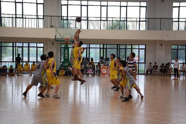 2014年5月7日晚6时,篮球赛于室内体育馆开幕。比赛分为甲、乙两组,此次男子篮球联赛中每组中五个系部一一进行对决,胜一场积2分,输一场积1分,最终按积分高低进行排名。
