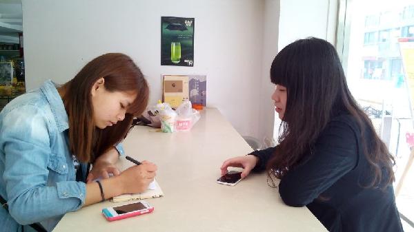 图一:陈艺楠正接受采访,其中右一为陈艺楠