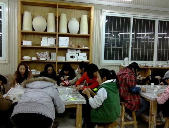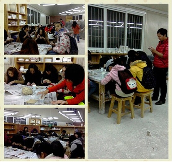 技术部及社长现场示范操作技巧,及过程中所注意的特殊要求点。新的陶艺技法引起了全体社员的积极参与和制作热情,技术部桂美琴、王思爽针对每位社员的问题一一指导解答。